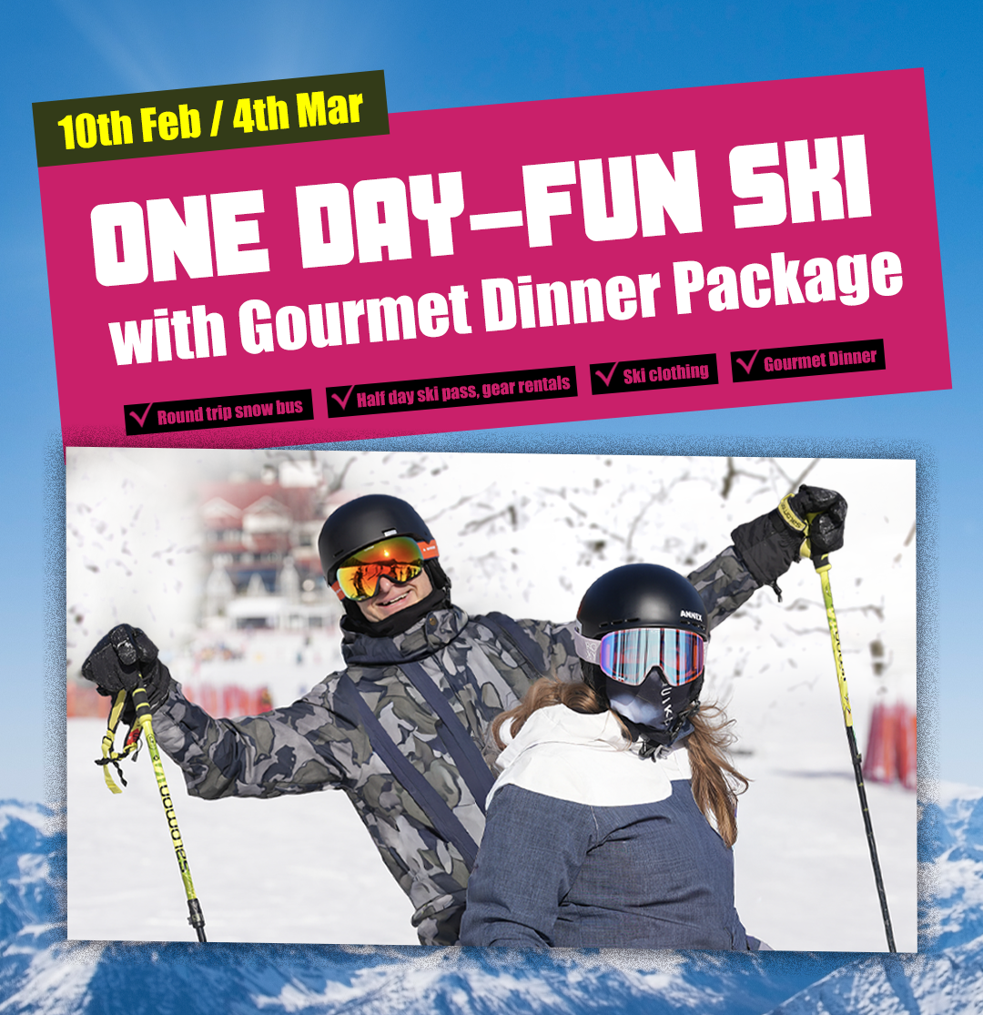 One-Day Ski Tour with Gourmet Dinner Package [10 Feb, 4th Mar]